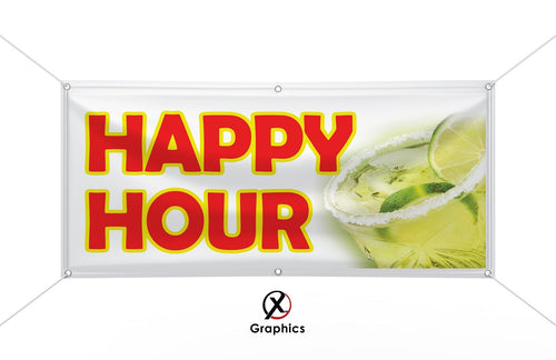 Happy Hour Vinyl Banner advertising Sign Full color any size Indoor Outdoor Advertising Vinyl Sign With Metal Grommets Drinks